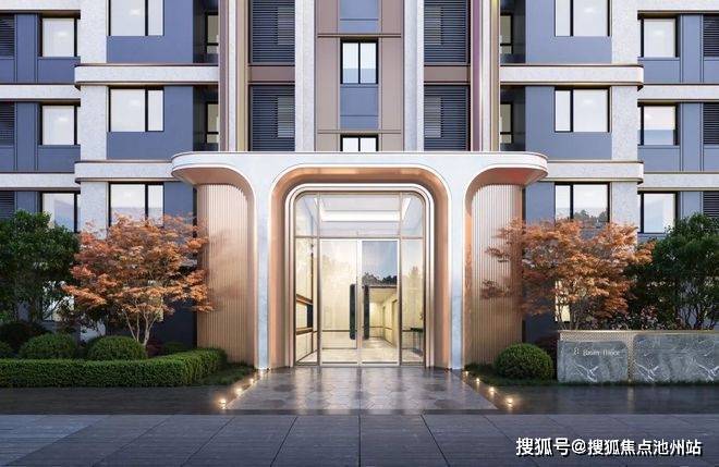外立面采用现代艺术风格,在大玻璃+宽幕的基础上,又融入香槟金铝板,单元入户门头还用了米白色石材。精筑先锋质感的视觉冲击力。