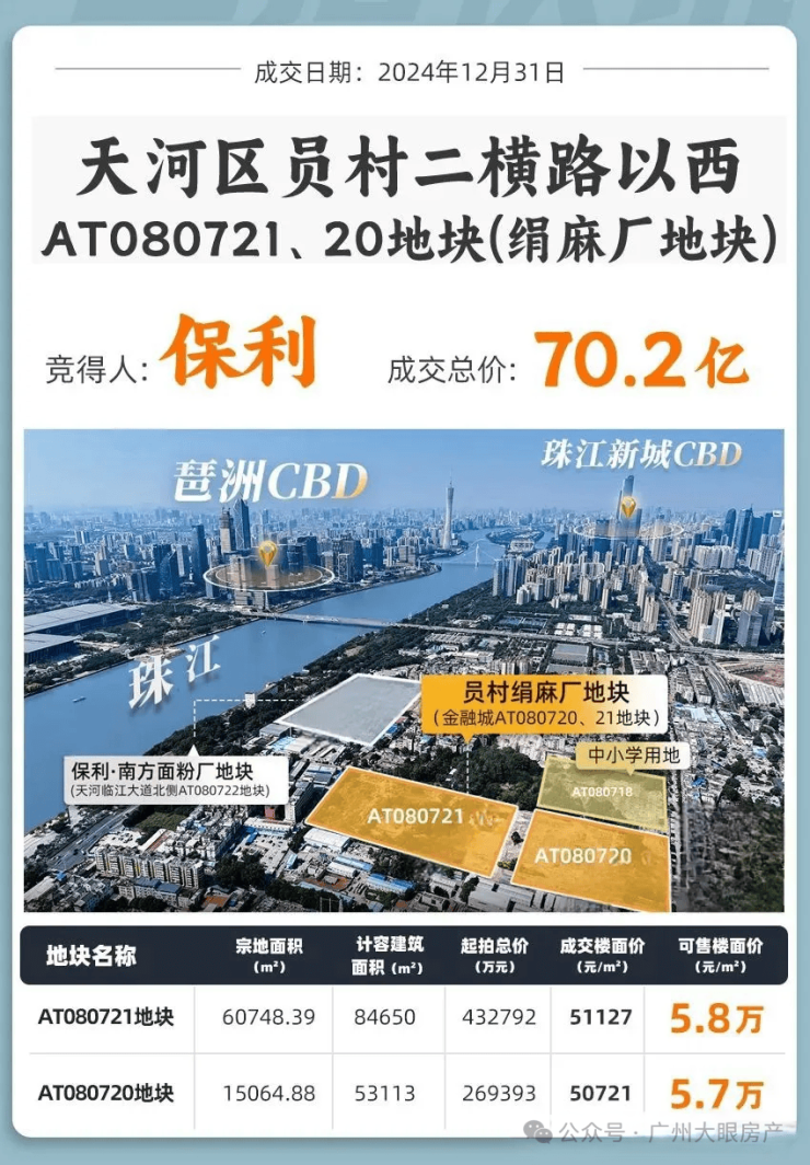 2024年12月31日,天河员村绢麻厂地块被保利拿下,折合成交楼面价5.1万/㎡!