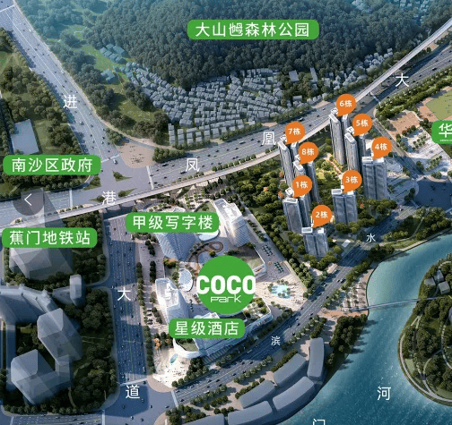 背靠9.46平方公里大山乸森林公园,俯瞰约6.2公里蕉门河景观线,可奢享慢跑、皮划艇、露营交替的水岸舒居生活。