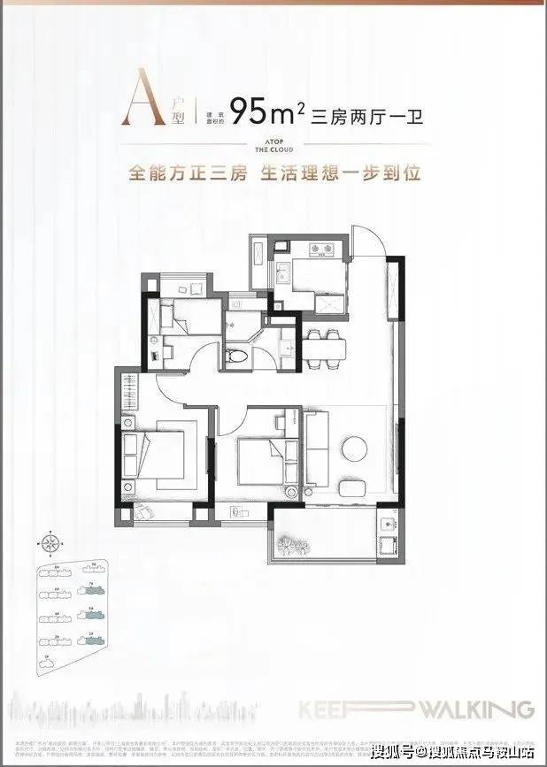 三期最新户型图👇建面约95㎡ 3房2厅1卫