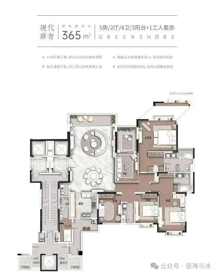 约365㎡5房双套房|2厅|4卫|3阳台+1工人套房