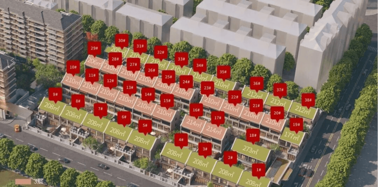 项目体量:共38套风貌别墅+2栋8层洋房,容积率约1.2,最大楼间距超10米。