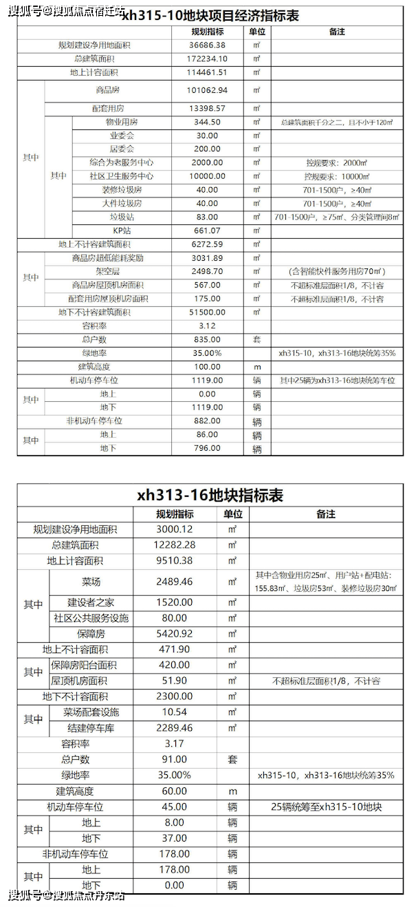 其中xh315-10地块为三类住宅组团用地(90%)、社区级公共服务设,施用地(10%),总用地面积约36686.38平方米,容积率3.12,限高100米,总建筑面积约172234.10平方米,地上计容面积约114461.51平方米,其中商品房面积约101062.94平方米,规划住宅套数835套。