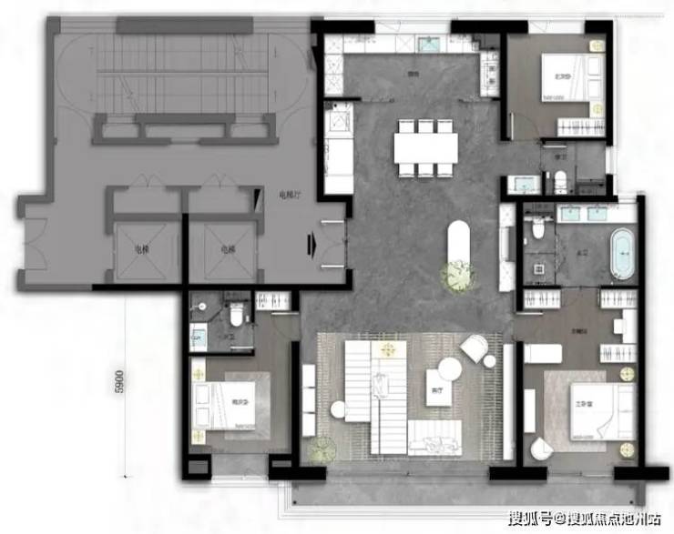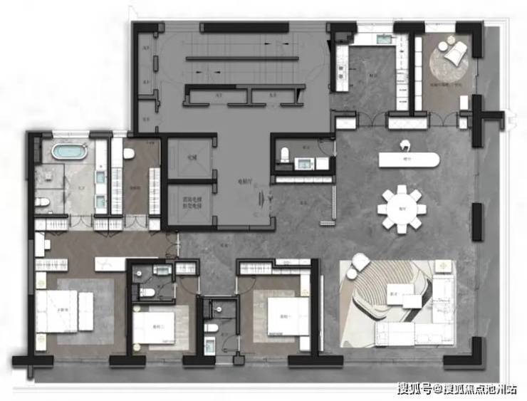 项目涵盖建面约200~322㎡面积段户型,200~233户型均为两梯两户类独梯入户,322户型为两梯一户,私家电梯厅入户。