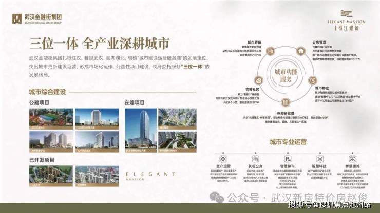 武汉金融街集团前身为武汉市江汉区房地产公司,成立于 1954 年,2020年 5 月经江汉区委、区政府批准,转企改制组建成立国有独资公司。集团以“城市建设运营服务商”的定位,作为江汉区属国有企业集团公司,江汉区城市发展更新进程的推动者和排头兵,71载风雨兼程,坚持做“长期主义者”,突出城市更新建设运营,形成市场化运作、公益性项目建设、政府委托服务“三位一体”的发展格局。