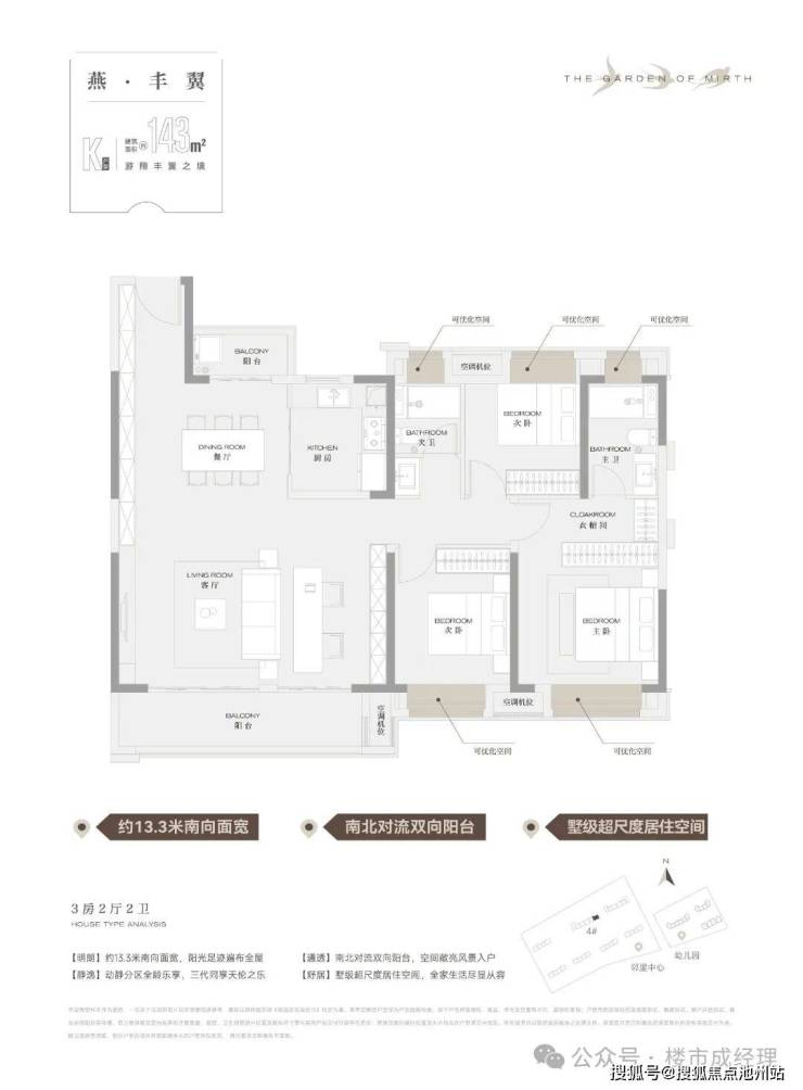 6.全优户型设计,最高约84%高实得率,全屋飘窗赠送,客厅无承重墙设计,让空间拓展更安全,客餐厨一体化布局,大横厅,盛纳一家人享受欢声笑语