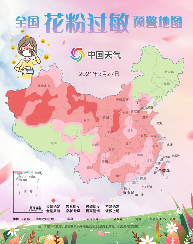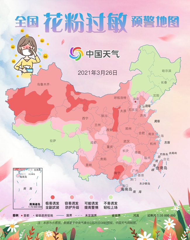 较新花粉过敏预警地图来了!全国大部上演花粉“持久战”