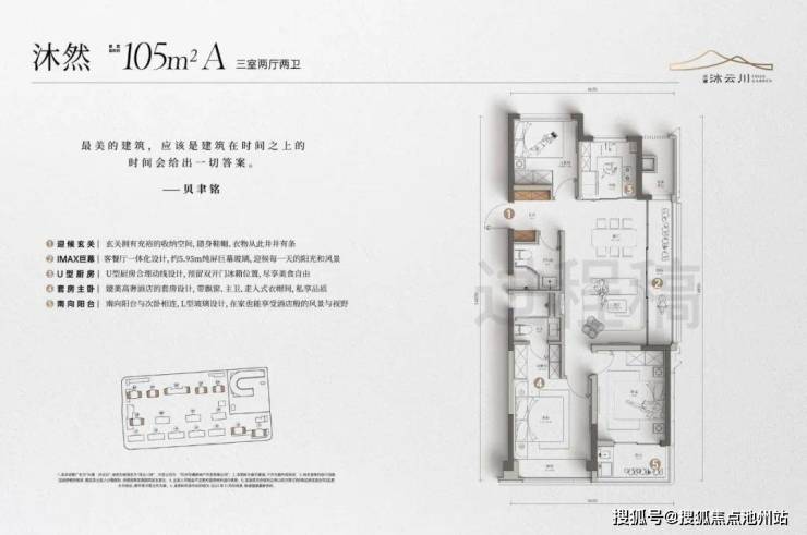 建面约105m²的户型有近6m的纯屏巨幅玻璃,大大提升了采光和观景的需求,“起床就能看到风景”。