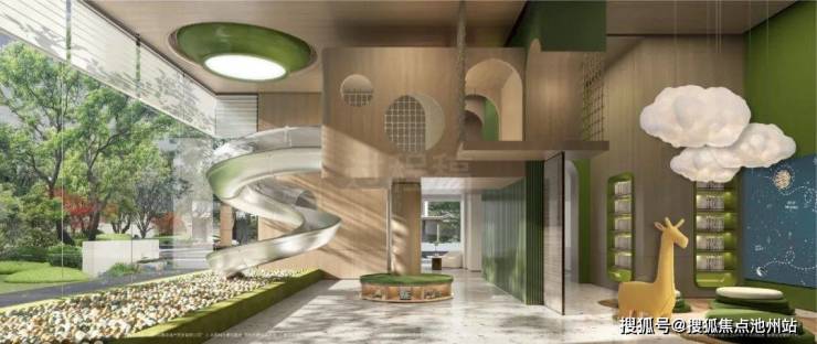 除了艺术氛围的升级,还有功能性升级。在沐云川,孩子们除了拥有一个挑高设计的室内乐园外,还有两个专门精心打造的全龄化户外乐园,在这里他们不但可以踏水嬉戏,还可以把乐园当成一座“植物博物馆”,在家门口就能上一堂辨认植物的科普课。“简直是孩子们的天堂!”