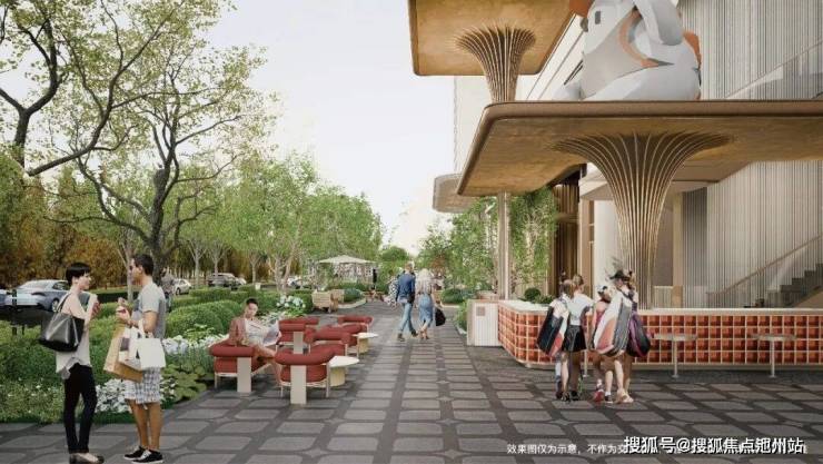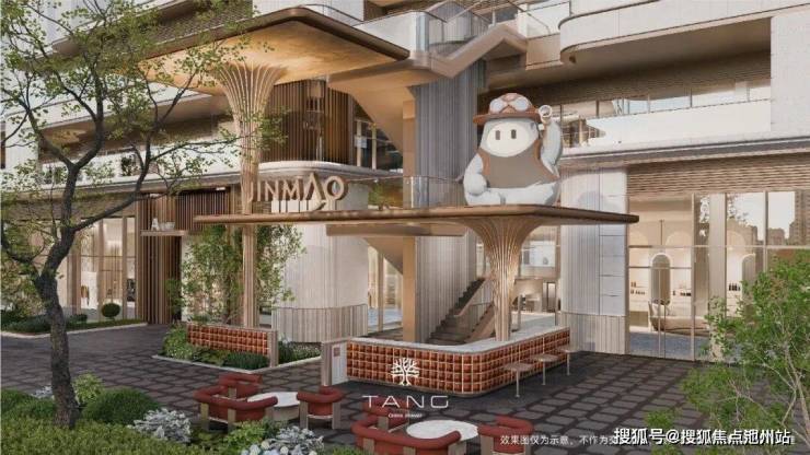 广场中央还特意栽种一棵标志性大树,这是金茂棠系产品标准的精神图腾,在绿荫下打造一个邻里社交聚点。