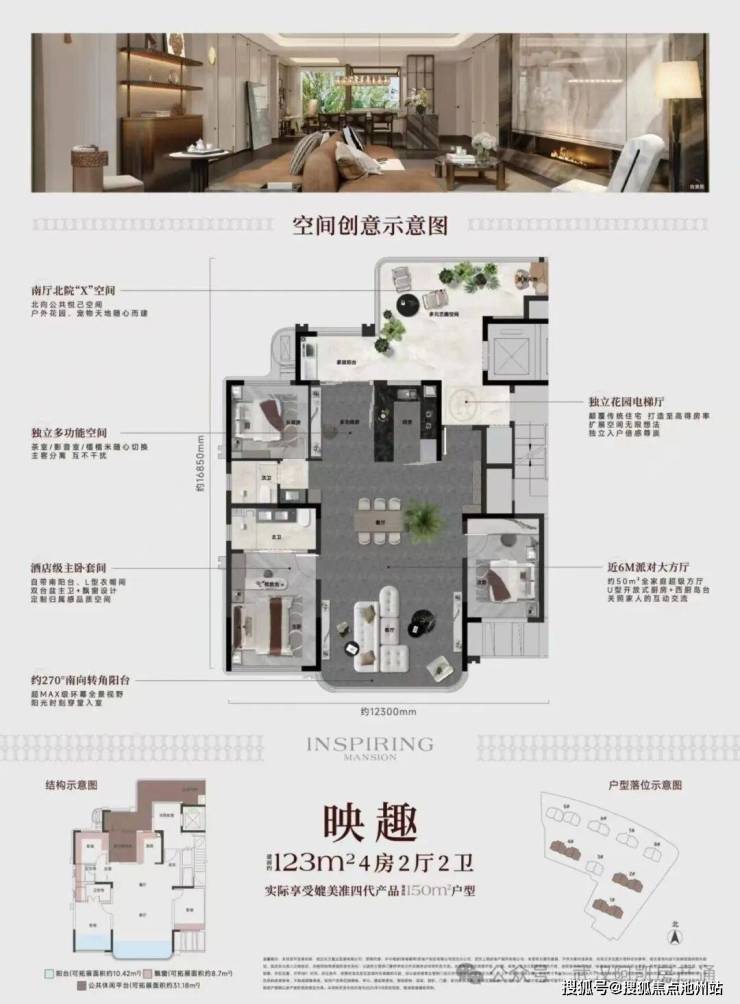 →户户独立电梯前室,实现优化后超120%得房率: