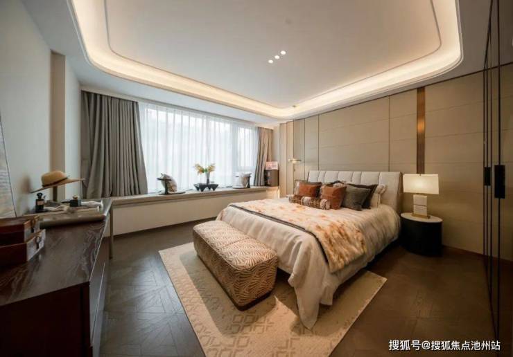 三层则完全留给主卧套,卧室区就超过了40㎡,外接L型大露台;衣帽间大得可以搁下展示柜,将珠宝和腕表一一陈列;阳光最好的南向小房间,做一间书房最是合宜。