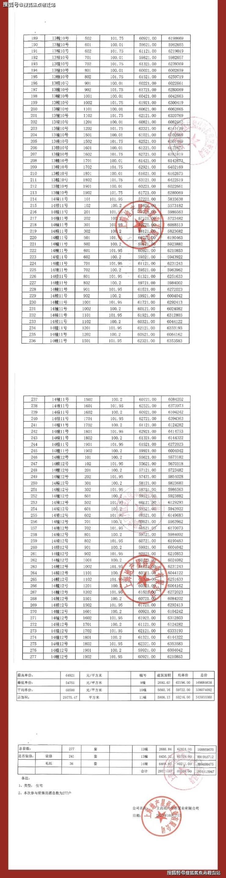 项目一房一价表▼