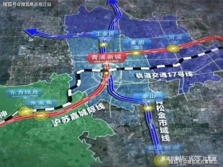 三轨枢纽,将投资410亿元打造的 青浦新城综合交通枢纽,实现示范区线(在建)、嘉青松金线(规划)、轨交17号线同站换乘,确定上海面向长三角的门户城市地位;