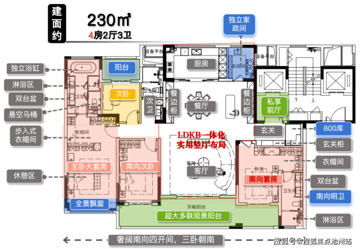 尺度升级,拥有独立家政间,高端豪宅必备!引入“南向双套房”舒适搭配,三代同堂都无压力,尊重每一代人的私密需求。