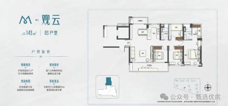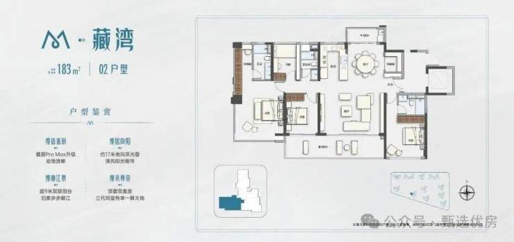 约8.1m宽幕主阳台,内可望园景 外可望江景+城景南向四开间约15.8m+主卧约4.4M观景阳台