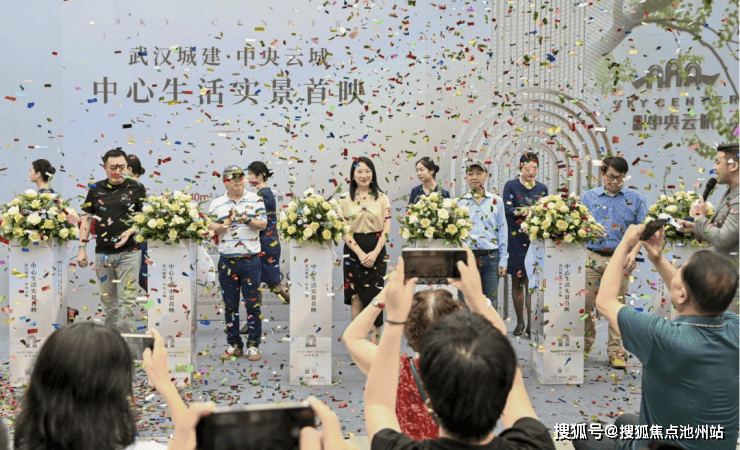 武汉城建集团·建卓置业副总经理于芃致欢迎词,随后,武汉市摄影家协会副主席、长江日报高级记者田飞、羊锅说楼出品人杨杰、武汉克而瑞总经理吴洋、中指研究院(华中)市场研究中心主任李国政和武汉城建集团·建卓置业副总经理于芃等5人共同剪彩庆贺,众多前来的武汉地产媒体及特邀嘉宾,共同见证武汉城建·中央云城的品质兑现。