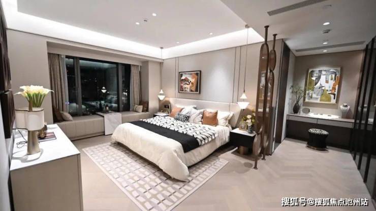 采取双套间设计,其中,主卧是约40㎡的行政总裁级别的主卧套房,可内置书桌或沙发,集卧室、双人衣帽间、洗浴间和书房四位一体,把空间的享受属性放大到极致。北向则是两间卧室,属于隐藏版“套房”。