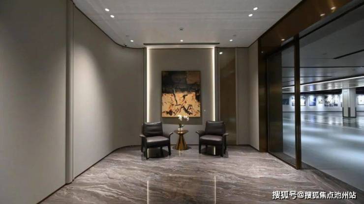 社区大堂门外,采用有着“蓝眼睛”美誉的天然大理石,视觉观感低调奢华,大隐隐于市的隐贵属性,油然而生。