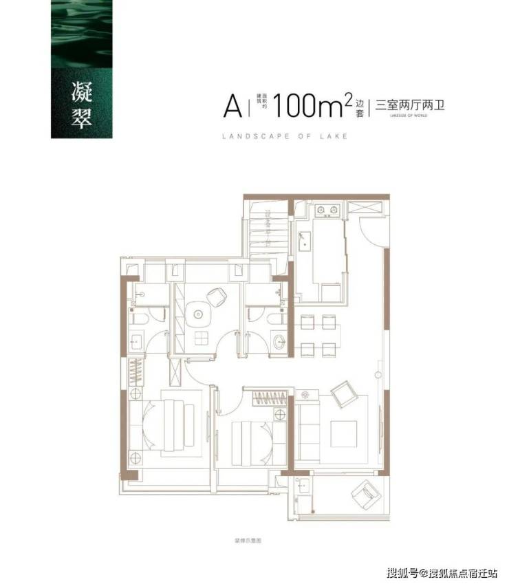 建面约100㎡3房2厅2卫,做到了三开间朝南+主卧套房设计+动静分离+全卧室带飘窗,功能性和尺度感完美结合的3房户型。该户型能满足业主从二人世界到三口之家,再到二胎家庭的全生命周期需求。