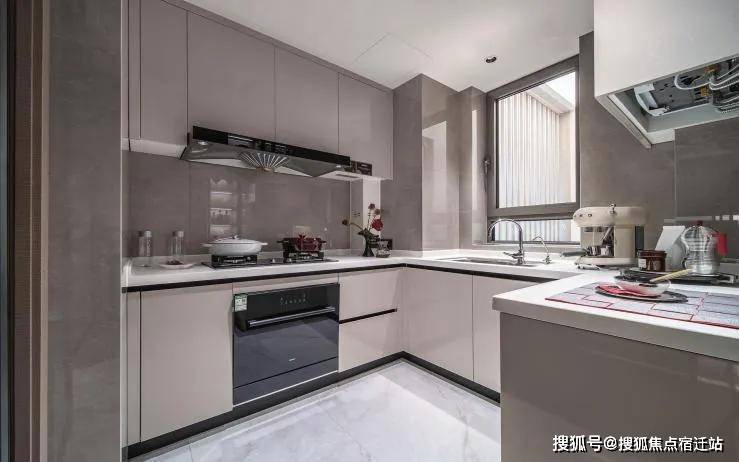 厨房铝合金移门采用顶部移门滑槽,便捷清洁打扫。更符合中国人烹饪习惯的老板的油烟机、燃气灶、12件套洗碗机三件套使用交付,更有摩恩的水槽和龙头、定制的组合橱柜。同时配有荣事达的净水器,奥普凉霸。