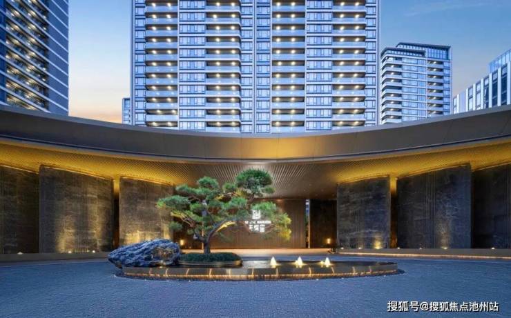 北区和南区的大门共同构成环抱式的空间格局。北区人行入口为一座宽60米,高6米的入户大门,迎面左右各布置3根直径4.2米的爱马仕灰奢石梭形柱,呈现出最高规格的归家仪式感。