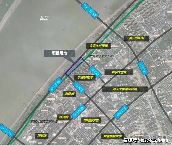 项目位于武昌区铁机路与临江大道交汇处,是武昌少有的一线临江滨江住宅。隔壁就是华润橡树湾,1.5环位置,在武昌区地段算还不错了。
