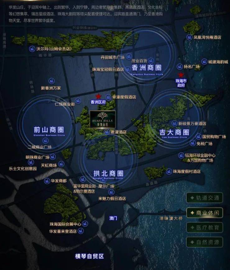 华发山庄,坐落于珠海主城区——香洲区核心。香洲,沉淀了40多年的醇熟配套与政经大脉,集萃着珠三角资金流和信息流,抵达澳门仅约5公里,距港珠澳大桥约10公里。由岁月积淀衍生的质变,往往是华发山庄此类顶豪的择址所在,增值契机不言自明。
