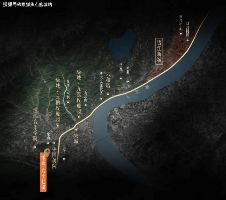 背枕西湖群山,面向钱塘江水,蜿蜒其中的之江大道,串联着岁月的故事与未来的憧憬。从承载着历史沧桑的六和塔,到闪耀着现代光辉的钱江新城;从古木参天的九溪玫瑰园,到洋溢着艺术气息的中国美院象山校区,六十七象安然静卧,沐浴着城市发展的璀璨辉芒。