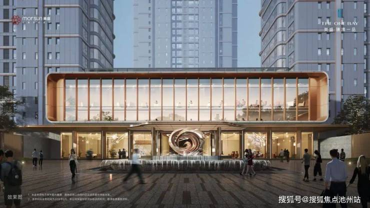 外立面方面,全新展翼建筑形态,南向超 80%大面积玻璃幕、香槟金铝板线条、270°弧形拐角,小区内部60米的星级酒店大门,6000平的园林森屿绿岛、还有超百米的风雨连廊、3000平的高奢会所。