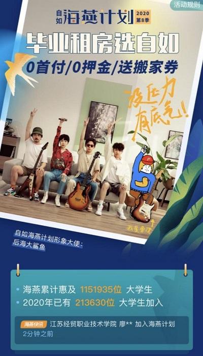 据了解,唐俊和他女朋友毕业后租的排名前列套房来自自如“海燕计划”,该计划是自如针对应届毕业生推出的社会责任项目。主要特点包括“租金月付、0押金、送搬家券”等。