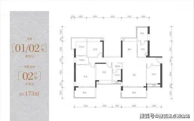 约173平4房2厅2卫(8栋01-02偶数层,9栋A-02奇数层)