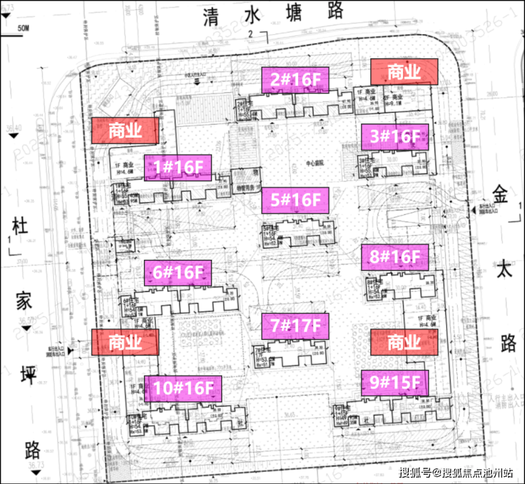 本项目共规划有9栋15-17层小高层住宅,住宅建筑面积51889.66㎡,共448户,均为90-150㎡的刚需/刚改产品。住宅部分规划车位404个,车户比为0.9:1。