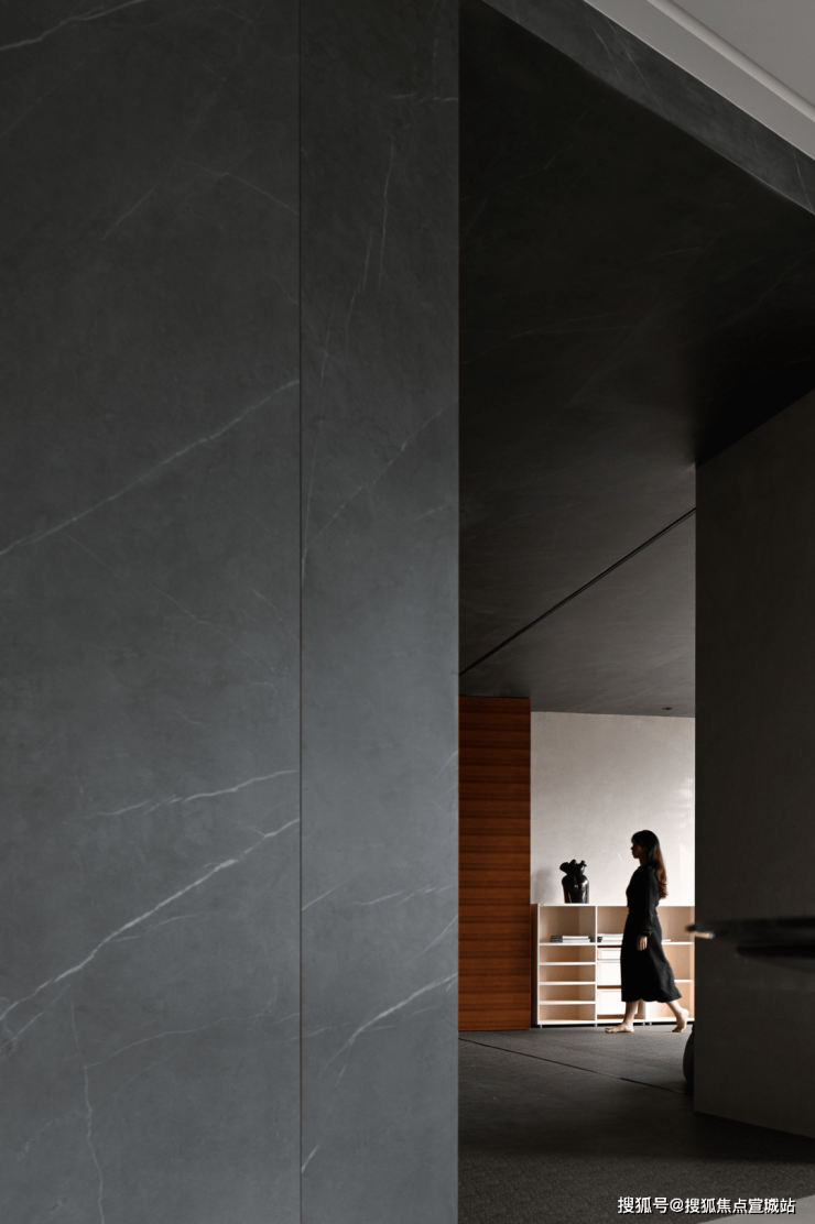 由客厅内行的廊道,通向私密的寝居空间,木与岩石的相互碰撞,寻求一个冷暖的平衡.
