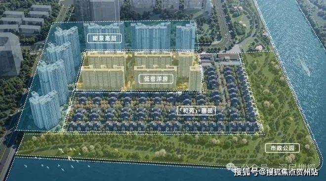 项目由7栋高层住宅、6栋洋房和低密度合院组成,向270°滨河景观开放,层层递进,形成前低后高、玉带环腰的风水格局,保证每户的良好采光和景观朝向。