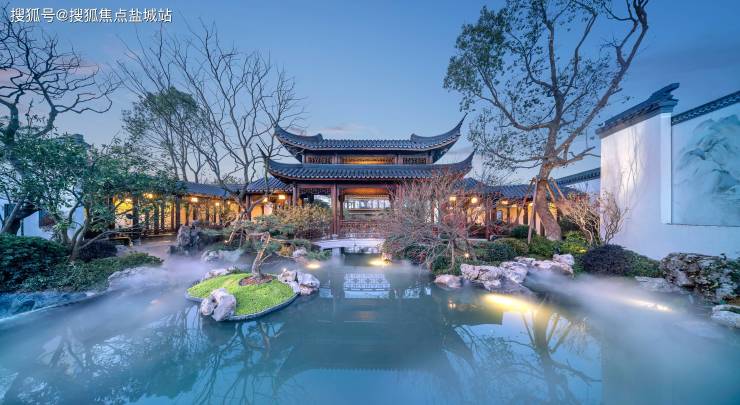师法江南古典园林之境,江映月打造“一轴、八院、八坊”景观,中轴鼎立,纵向为轴、横向为苑使得前庭层层递进,仪式尊崇;后苑灵活布局,师法自然。借势山水,呈现步移景异的东方美学意境。
