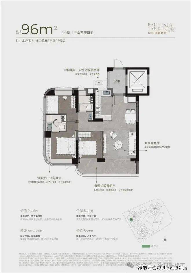 双龙抱珠户型,整个户型非常通透。书房分布于客厅另一侧,难得的双面采光+270°景观视野。主卧南北通透,景观面开阔。