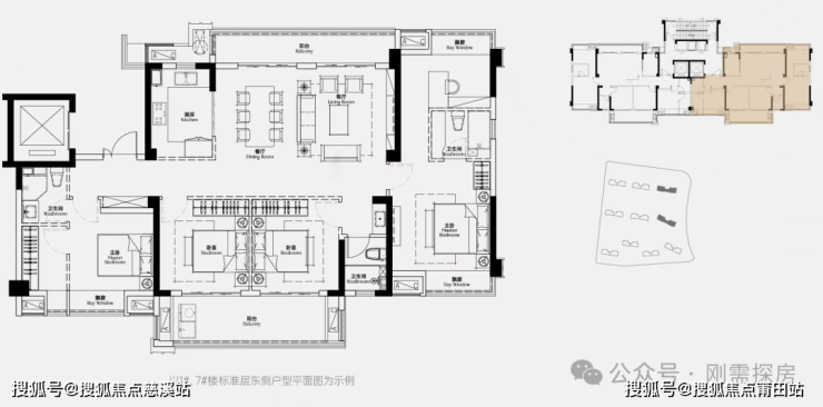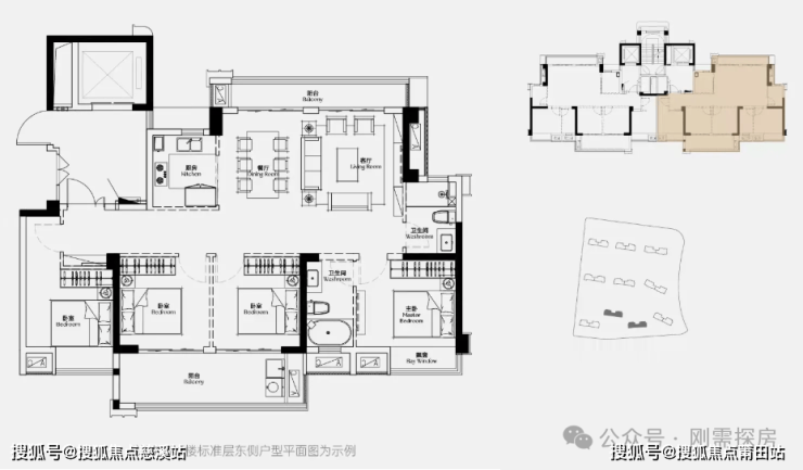 170平:四房两厅三卫,一梯一户,150平观景产品的升级,最大特色就是双主卧设计,特别是右侧主卧搭配书房,功能性拉满,要说不足,还是一个暗卫,还是无法南北通透,虽然是横厅设计,不过在这个面积段,公区的面积还是稍显一般。