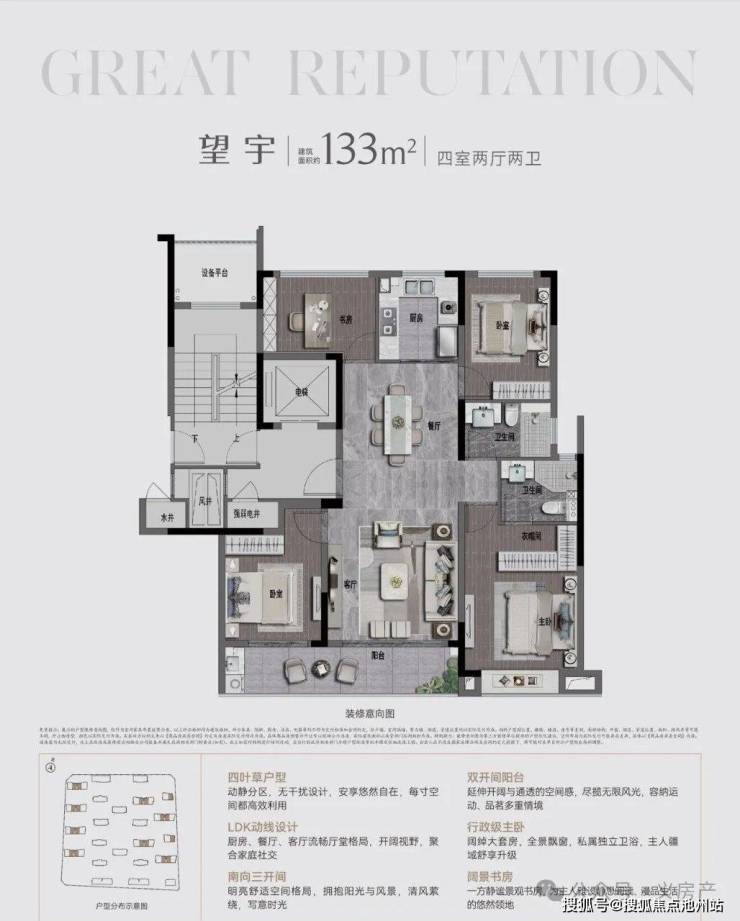 集合四叶草布局、LDK动线、行政主卧等优势