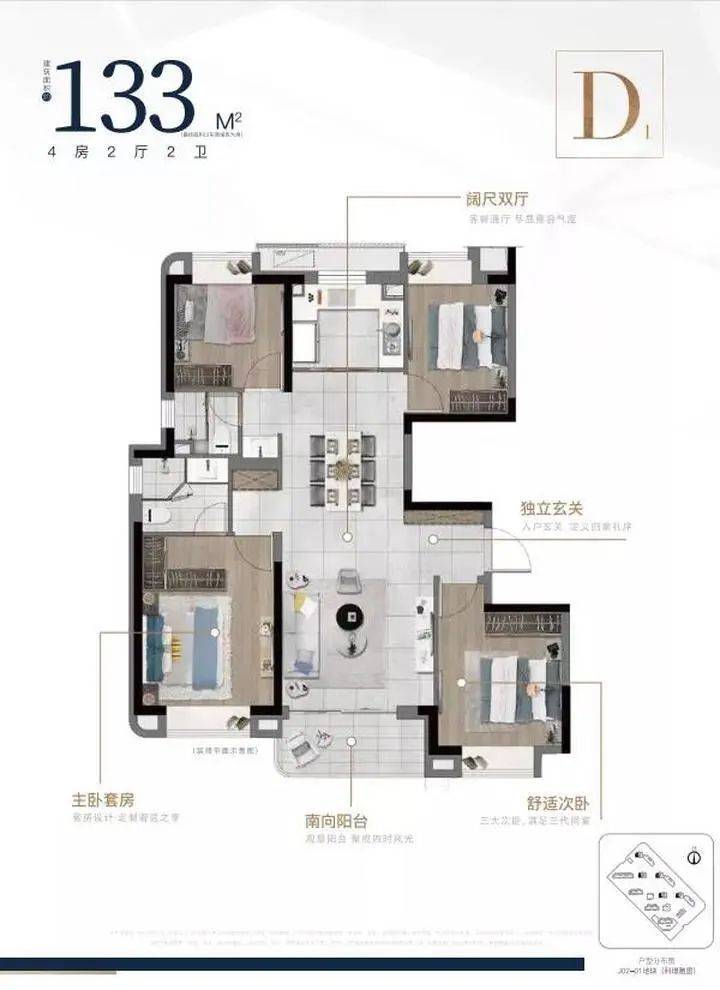 建面约133平四房两卫:总价约450-550万