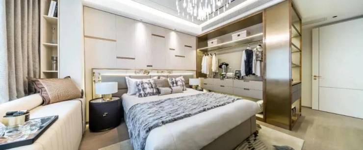 精装品牌和细节是开发商诚意的直接体现。项目选用各大进口、国产品牌的中高端零售款产品,比如日立中央空调、菲斯曼地暖;方太侧吸油烟机、燃气灶、蒸烤一体机、洗碗机,欧派橱柜,开能净水器;科勒洁具,摩恩龙头、淋雨花洒都是交付标准。人性化细节也相当出彩。比如,客厅和主卧都标配悬浮吊顶、无主灯设计,背景墙采用皮革和铝合金拼接,也都是实体交付的。