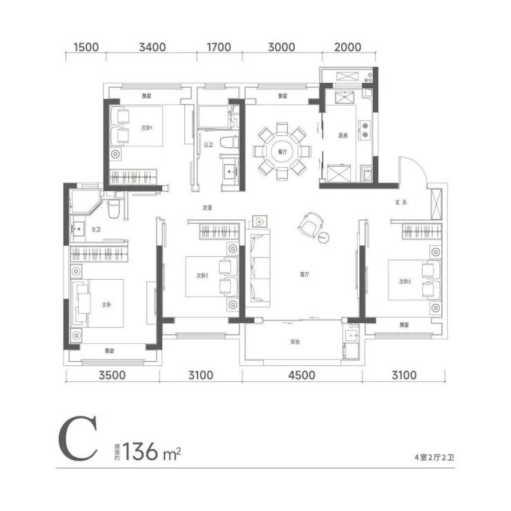 全系板式户型格局,东西大面宽,南北短,采光通风好。建面约100㎡是实打实3房,客厅宽度达3.6米,主房间宽达3.3米,连北面小房间也能放1.5米宽的床。建面约123㎡做到了4房,且客厅面宽达6.2米,主房间宽达3.7米,且北面2间小房间根据需求可打通。建面约136㎡客厅宽达4.5米,主卧宽3.5米,次房间分别达3.1米、3.4米,独立餐厅,靠窗南北通透。