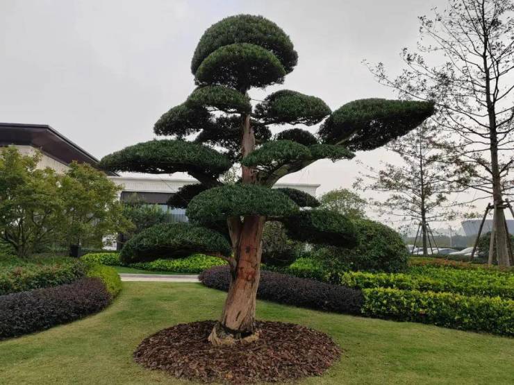 这造价可不是贵一点点,因名树木生长慢,比如罗汉松尺寸大一圈,价格贵很多;造型好的树木价格又要翻一番,关键开发商挑选的都是品相360°都耐看的树木。好的树木像书画、工艺品,品相好会比一般高数倍甚至上百倍。全上海肯这样花钱种这么多、这么大、品相好高档树的只有佳运公司!