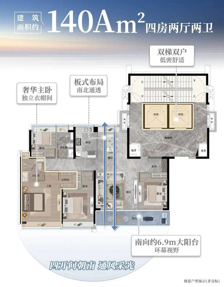 建面约140平南向约6.9m大阳台产品