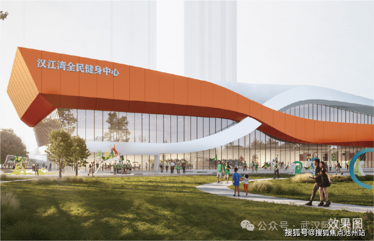 直线距离约100M即达约1.1万㎡汉江湾全民健身中心(预计年底投入使用):涵盖篮球、羽毛球、游泳等体育场馆。
