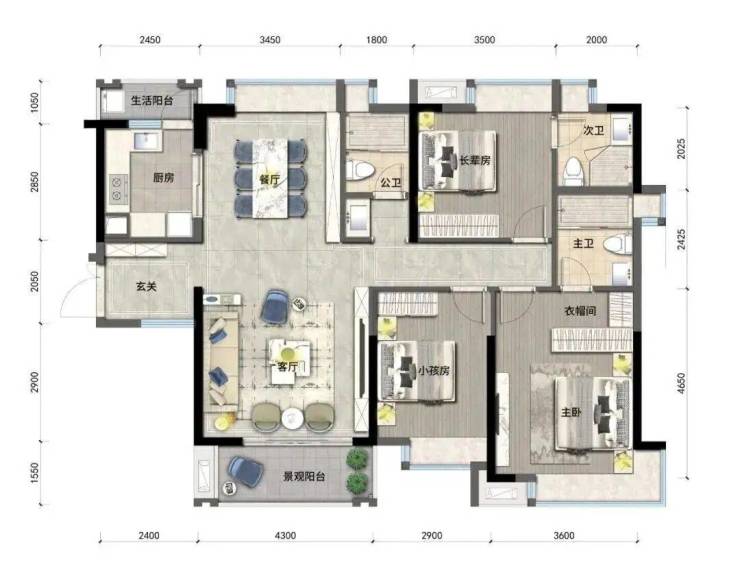 ◎独立衣帽间,双套房三卫设计,彰显豪宅气派