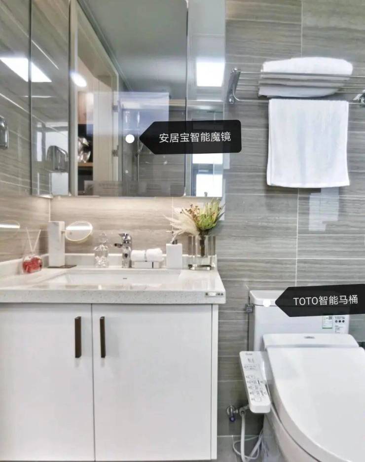 AI人脸识别门禁,三星智能门锁,安居宝智能魔镜,TOTO智能马桶,安居宝智能面板,罗格朗智能WIFI。全宅高端智能配置,多样化智能家居体验,一键总控,精工筑家,让未来生活一触即发。