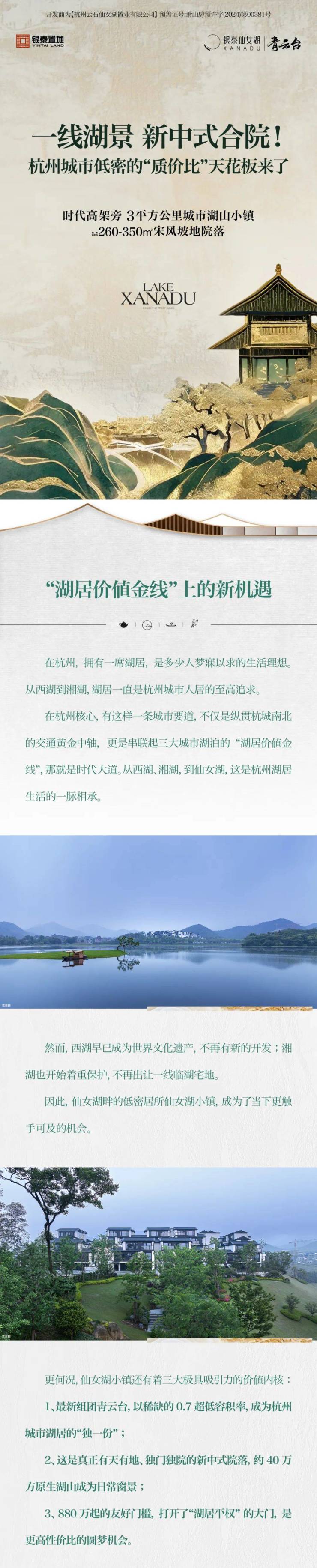 一线湖景,新中式合院!杭州城市低密的“质价比”天花板来了