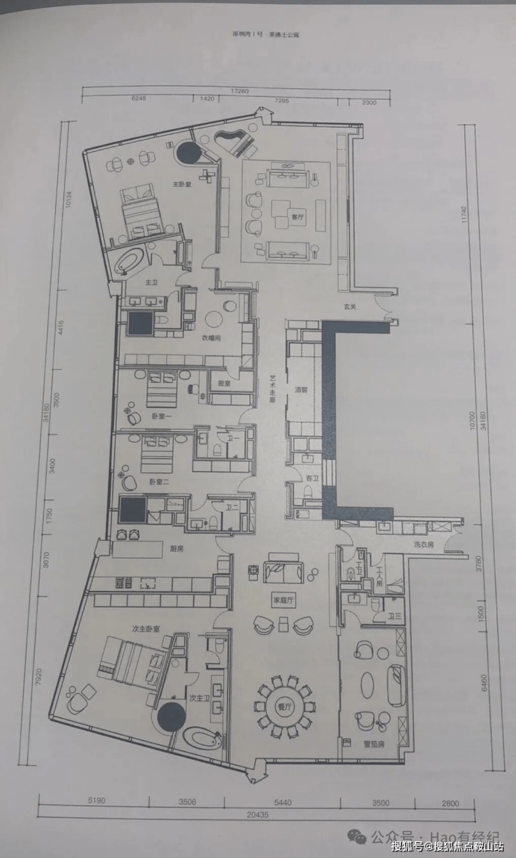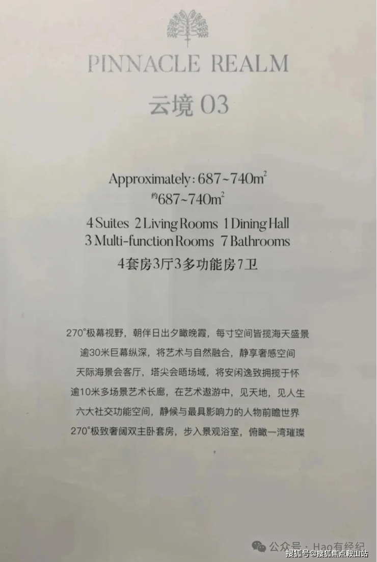 T7栋(莱佛士公寓)720m²5+1房 东北向(36万~38万/m² 总价约2.5亿)