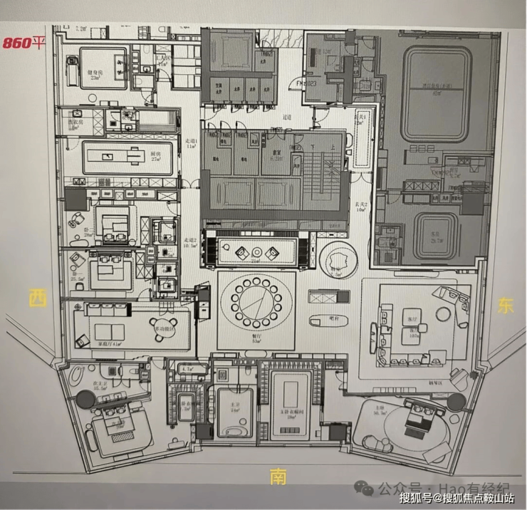 T7栋(莱佛士公寓)862m²5+1房 东南向(36万~38万/m² 总价约3亿)